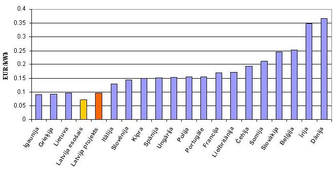 Eiropas Savienības valstu elektroenerģijas tarifi, salīdzinājums: