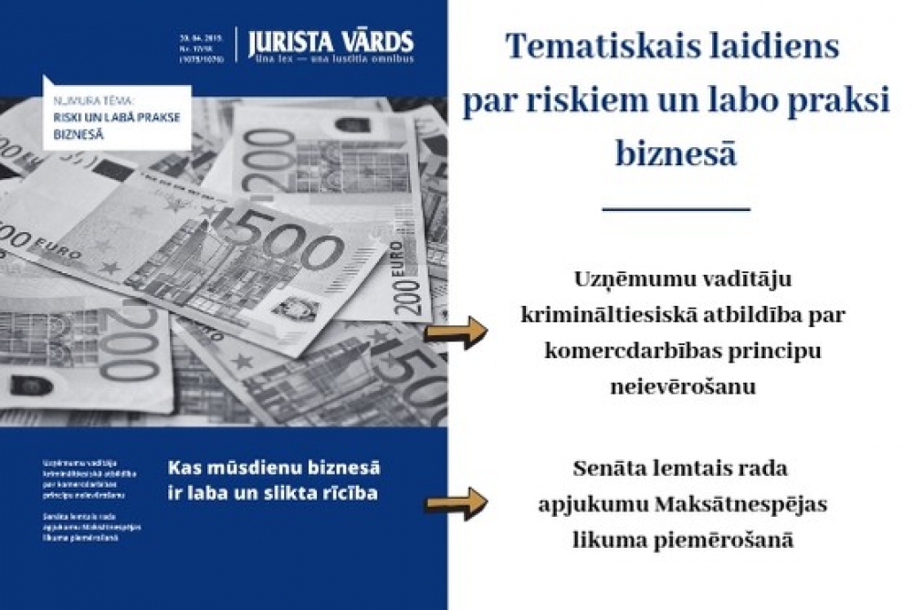 “Tematu iniciēja Tieslietu ministrijas valsts sekretāra vietniece Laila Medina, kura ir arī tematiskā laidiena viesredaktore. Pieteikumā viņa norāda šādas izvēles iemeslu – nepieciešamību uz labo pusi mainīt biznesa kultūru Latvijā,” tā numura tēmu redakcijas slejā piesaka žurnāla “Jurista Vārds” galvenā redaktore Dina Gailīte. “Šie temati, tikai virspusēji raugoties, var likties "nejuridiski". Jo jurists strādā gandrīz katrā uzņēmumā vai vismaz to konsultē. Un tieši jurists ir tas, kurš veido iekšējos normatīvus, gatavo līgumus, brīdina uzņēmuma vadību par potenciālajiem riskiem un aizdomīgiem partneriem.”