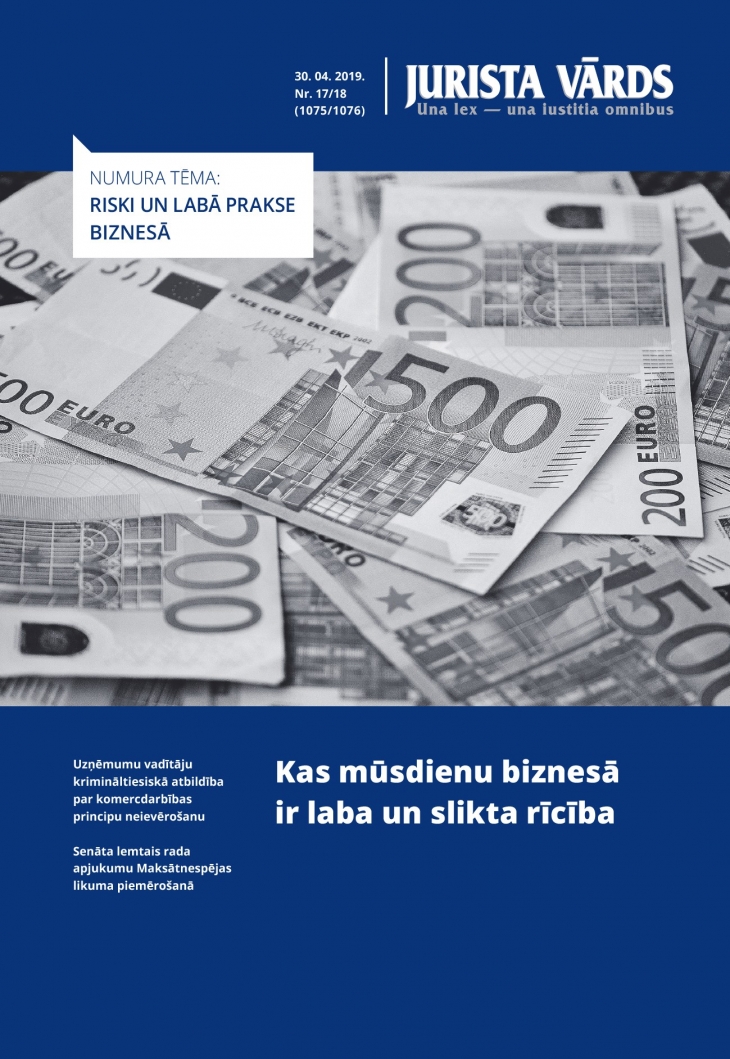 Numurs pieejams arī elektroniski: 2019. gada 30. aprīlis “Jurista Vārds”