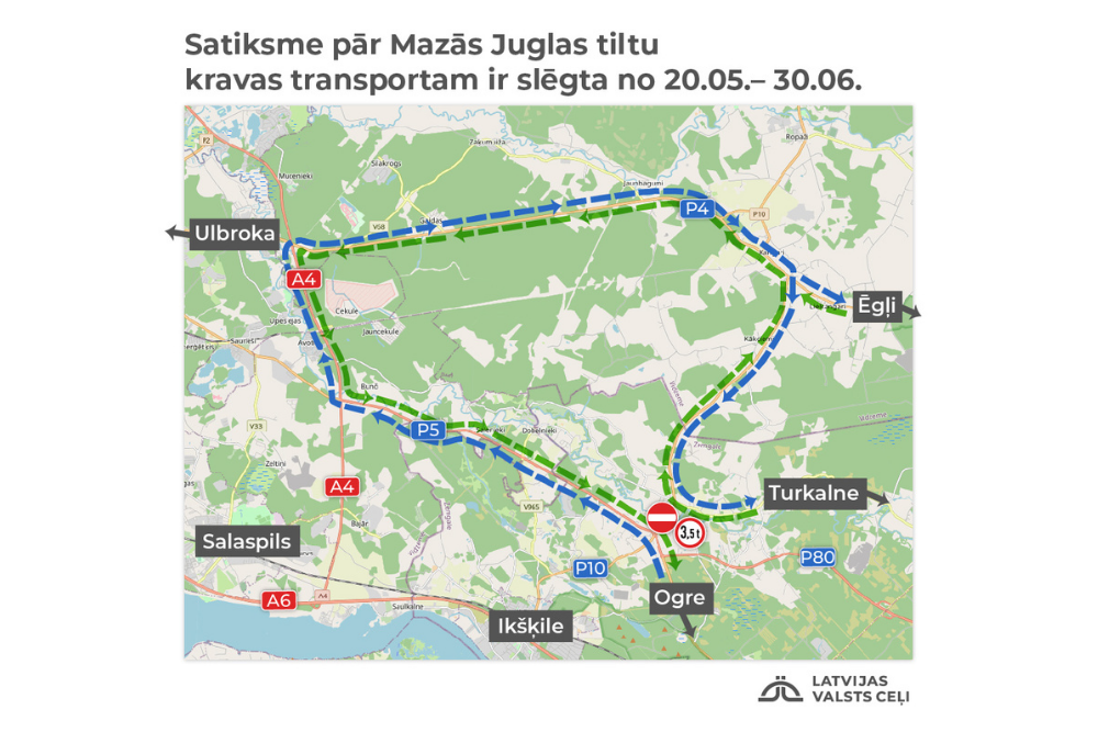 Apbraucamā ceļa garums kravas transportam ir aptuveni 40 km un papildu ceļā var nākties pavadīt līdz par stundai. Apbraukšanas shēma pielikumā.