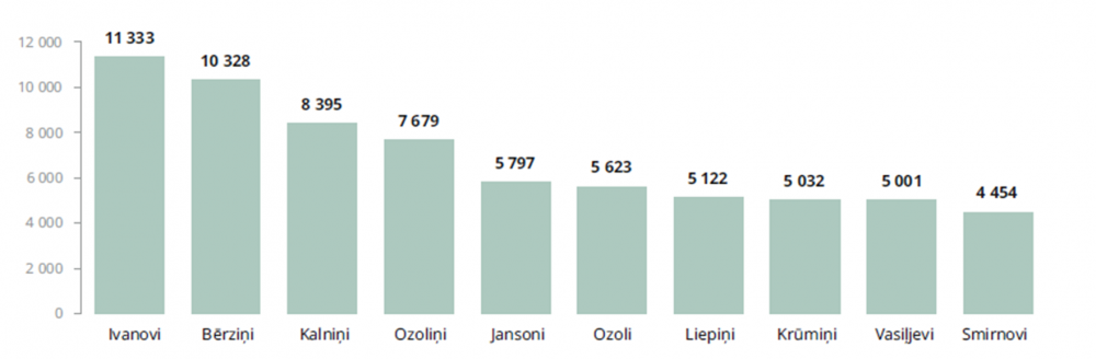 10 izplatītākie uzvārdi Latvijā 2021. gadā1