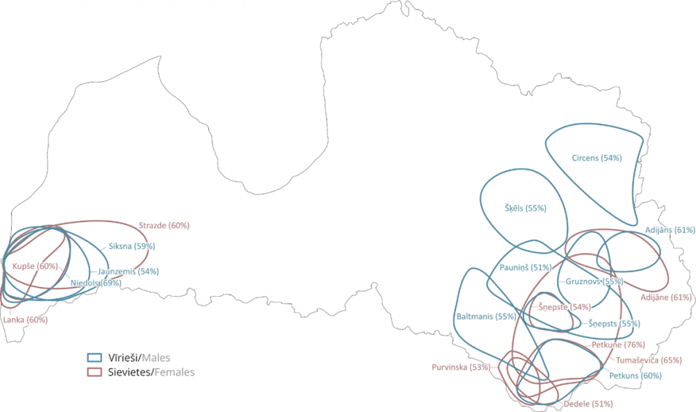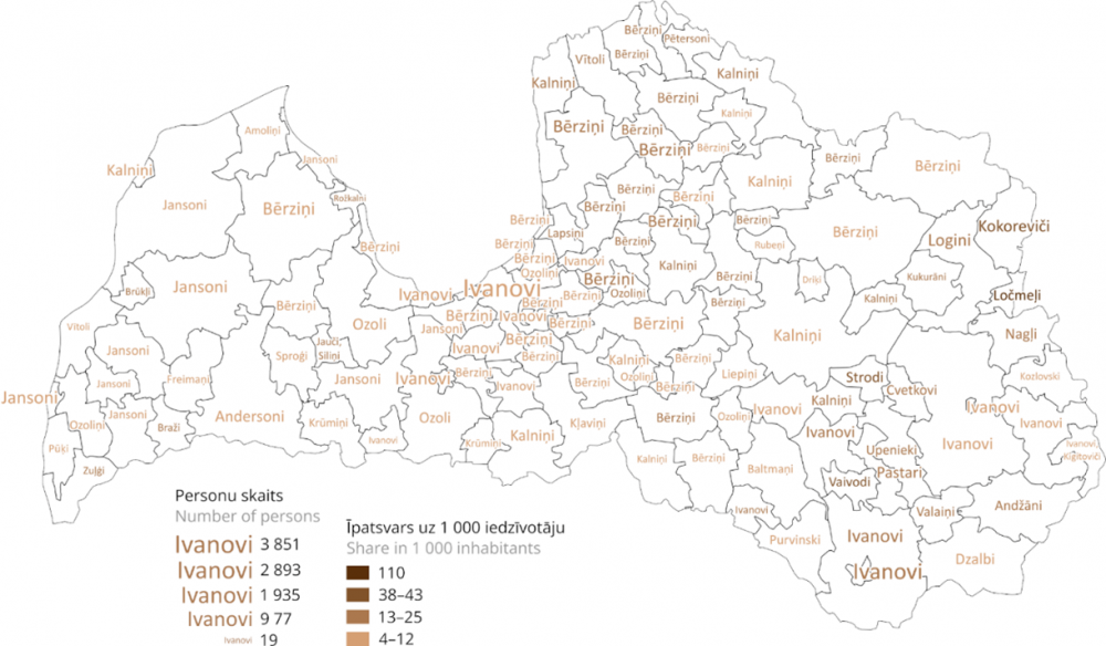 Latgalē un Kurzemē novērojamas teritorijas ar izteiktu viena uzvārda koncentrāciju iedzīvotāju vidū