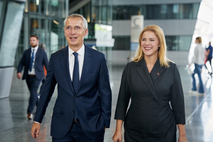 NATO jaunie reģionālās aizsardzības plāni un palielināta sabiedroto klātbūtne austrumu flangā apstiprina alianses dalībnieku kopīgo apņemšanos veidot vēl spēcīgāku NATO, uzsvēra Ministru prezidente. Viņa izteica pateicību visām nācijām, kuru karavīri ir Latvijā bāzētās daudznacionālās kaujas grupas sastāvā. Ministru prezidente uzsvēra, ka ļoti augstu novērtē Kanādas apņemšanos Latvijā izvietot papildu spēkus un bruņojumu, kā arī Dānijas lēmumu par kaujas bataljona dislocēšanu Latvijā. Viņa arī pateicās personīgi NATO ģenerālsekretāram J. Stoltenbergam par stingro līderību, vadot NATO aliansi šajā nemierīgajā laikā.