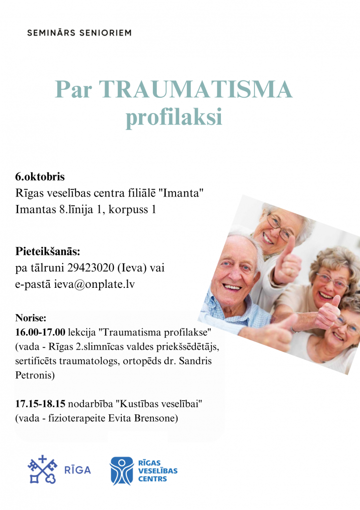 Seminārs notiks piektdien, 6. oktobrī, plkst. 16.00 – 18.15 SIA “Rīgas veselības centrs” filiālē “Imanta” (Imantas 8.līnija 1, korpuss 1).