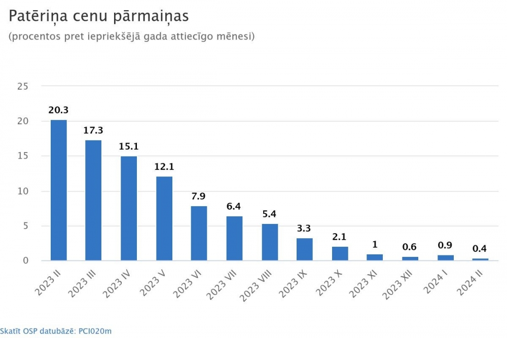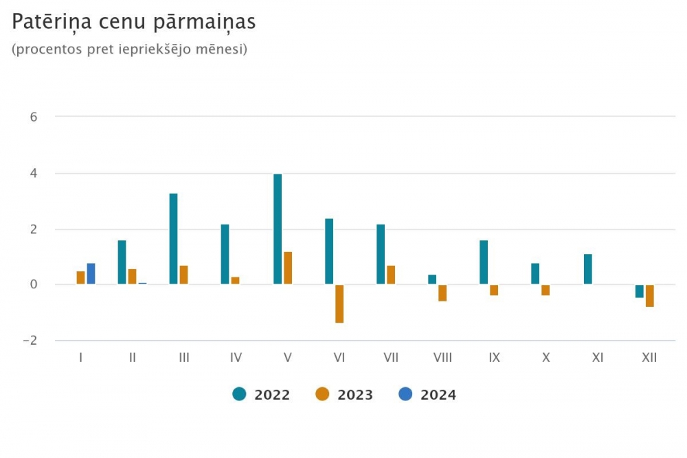 Informāciju par patēriņa cenu pārmaiņām 2024. gada martā paziņos 9. aprīlī.