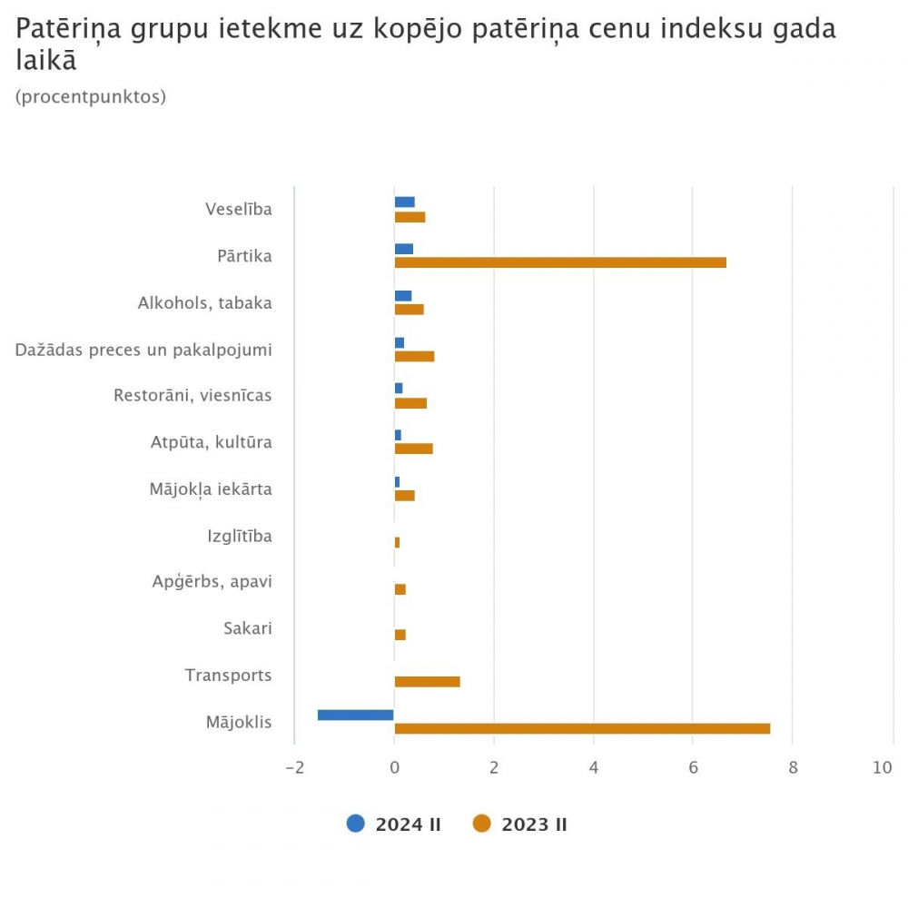 (-0,1 procentpunkts), apģērbam un apaviem (-0,1 procentpunkts).