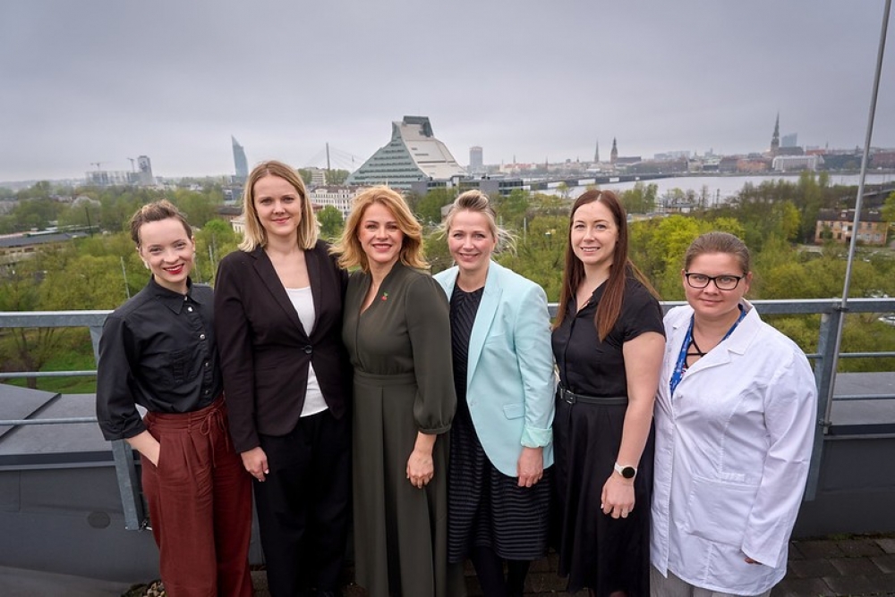 Ministru prezidente tikās arī ar zinātņietilpīgā jaunuzņēmuma “Alina” līdzīpašnieci Solvitu Kostjukovu, “P-Agro Minerals” līdzdibinātāju Anniju Emersoni un zinātniecēm Jūliju Karasu, Rūtu Ozolu-Davidāni un Sandiju Ozoliņu-Grinevicu, kā arī apskatīja modernu farmācijas laboratoriju.