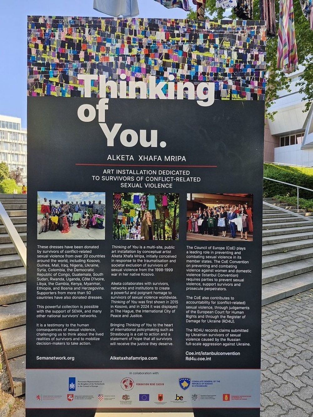 “Domājot par Tevi” instalācija ir globāls projekts, kas iepriekš izrādīts Hāgā 2024. gada jūnijā, bet šī gada rudenī to plānots izrādīt Ņujorkā “Sievietes, miers un drošība” ANO Drošības padomes rezolūcijas 25. gadadienā.