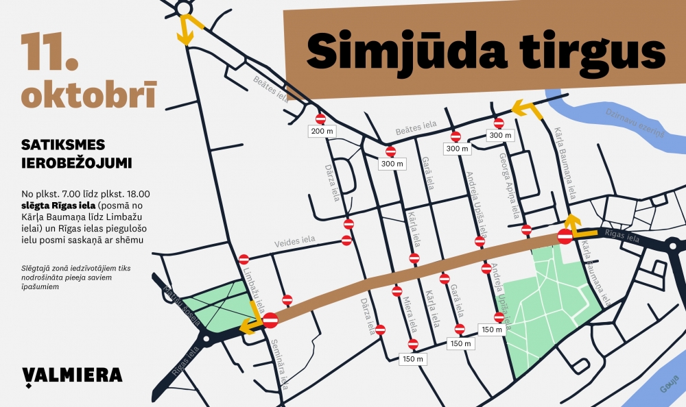 Būs slēgta Rīgas iela posmā no Kārļa Baumaņa ielas līdz Limbažu ielai un Rīgas ielai piegulošo ielu posmi, nosakot apbraucamo ceļu. Iedzīvotājiem tiks nodrošināta piekļuve īpašumiem. Lūdzam sekot līdzi ceļazīmēm.