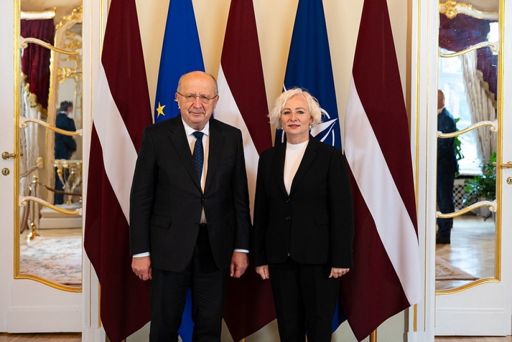 Kopā ar Saeimas priekšsēdētāju sarunā piedalījās arī Saeimas Aizsardzības komisijas priekšsēdētājs Raimonds Bergmanis.