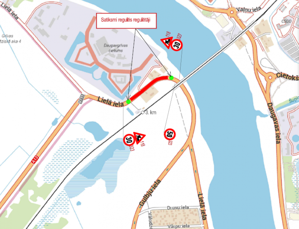 Satiksme Lielās ielas posmā Daugavgrīvas cietuma tuvumā tiks organizēta atbilstoši shēmai.