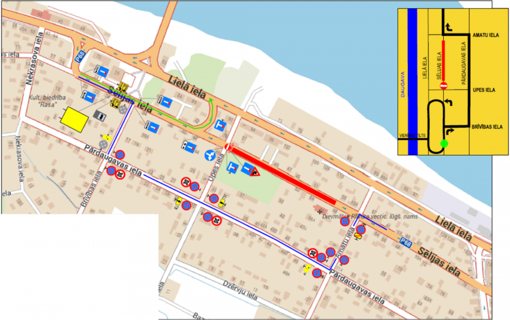 Satiksme Sēlijas ielas posmā no Upes ielas līdz Grīvas vecticībnieku lūgšanu namam tiks organizēta atbilstoši shēmai.