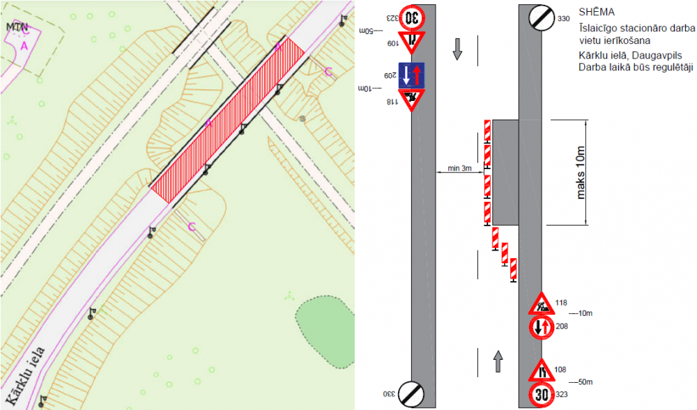 Aicinām autovadītājus būt uzmanīgiem un sekot satiksmes organizācijas zīmēm.