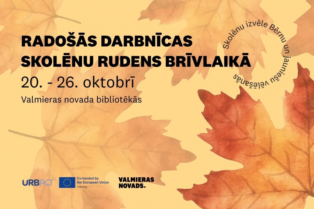 Aicinām bērnus un jauniešus piedalīties un ļauties fantāzijai Valmieras novada bibliotēkās skolēnu rudens brīvlaikā. Pirms norises apmeklējuma aicinām sazināties ar konkrēto bibliotēku, lai iegūtu papildu informāciju par radošo darbnīcu norisi un pieteikšanos.