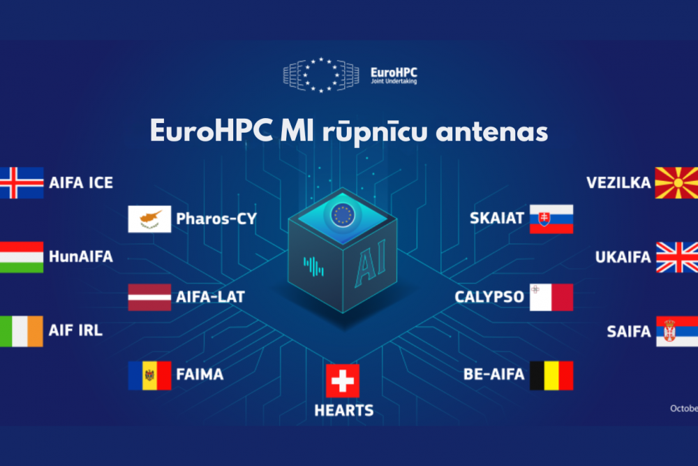 Šoruden izvēlētas 13 “antenas” valstīs, tostarp Latvijā, lai paplašinātu piekļuvi MI pielāgotiem superdatoru resursiem visā Eiropā. Šīs “antenas” papildinās esošās MI rūpnīcas, veidojot vienotu tīklu, kas atbalsta pētniecību, inovācijas un rūpnieciskos pielietojumus dažādās nozarēs.