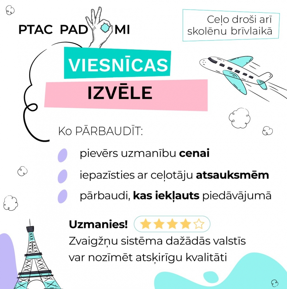 Lai izvēlētos piemērotu viesnīcu, PTAC iesaka: