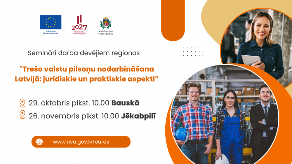 Aicinām darba devējus izmantot šo iespēju un iegūt noderīgu informāciju par trešo valstu pilsoņu darbaspēka piesaistes jautājumiem! Semināri īpaši noderēs tiem darba devējiem, kuri plāno piesaistīt darbiniekus no ārvalstīm un vēlas labāk izprast normatīvo aktu prasības, kas regulē trešo valstu pilsoņu nodarbināšanu Latvijā.