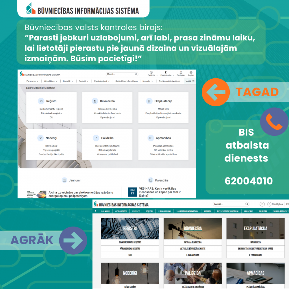 Atjaunināts arī BIS portāla un sistēmas vizuālais un funkcionālais dizains – ieviestas kontrastējošas pogas ar ikonām, vienkāršots datu ievades formu izkārtojums un izmantots jauns, vieglāk uztverams burtveidols.