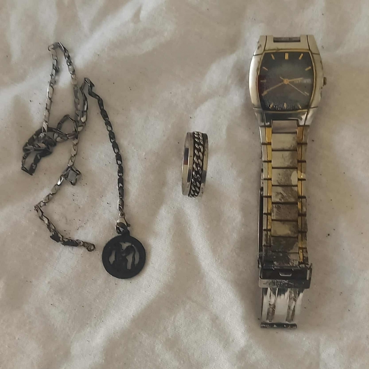 Valsts policija aicina aplūkot attēlos redzamās mantas, kuras atrastas pie bojāgājušā vīrieša, un atsaukties personas, kas varētu sniegt informāciju par bojāgājušā personību, zvanot pa tālruņa numuru 112.