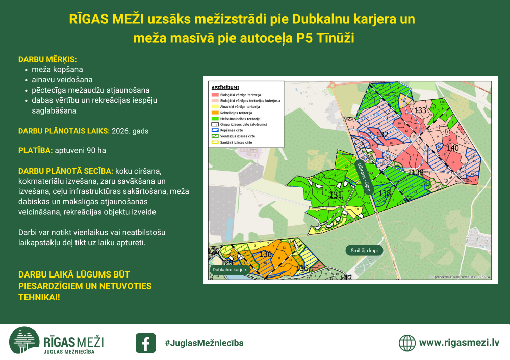 2026. gadā SIA “Rīgas meži” uzsāks mežizstrādi pie Dubkalnu karjera un meža masīvā pie autoceļa P5 Tīnūži.