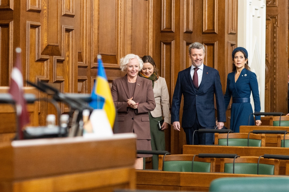 Kopā ar D.Mieriņu ar Dānijas karali un karalieni parlamentā tikās arī Saeimas priekšsēdētājas biedres Zanda Kalniņa-Lukaševica un Antoņina Ņenaševa, Saeimas sekretārs Edvards Smiltēns un Saeimas sekretāra biedrs Jānis Grasbergs, kā arī Ārlietu komisijas priekšsēdētāja Ināra Mūrniece un Saeimas deputātu grupas sadarbības veicināšanai ar Dānijas parlamentu vadītājs Andris Šuvajevs.