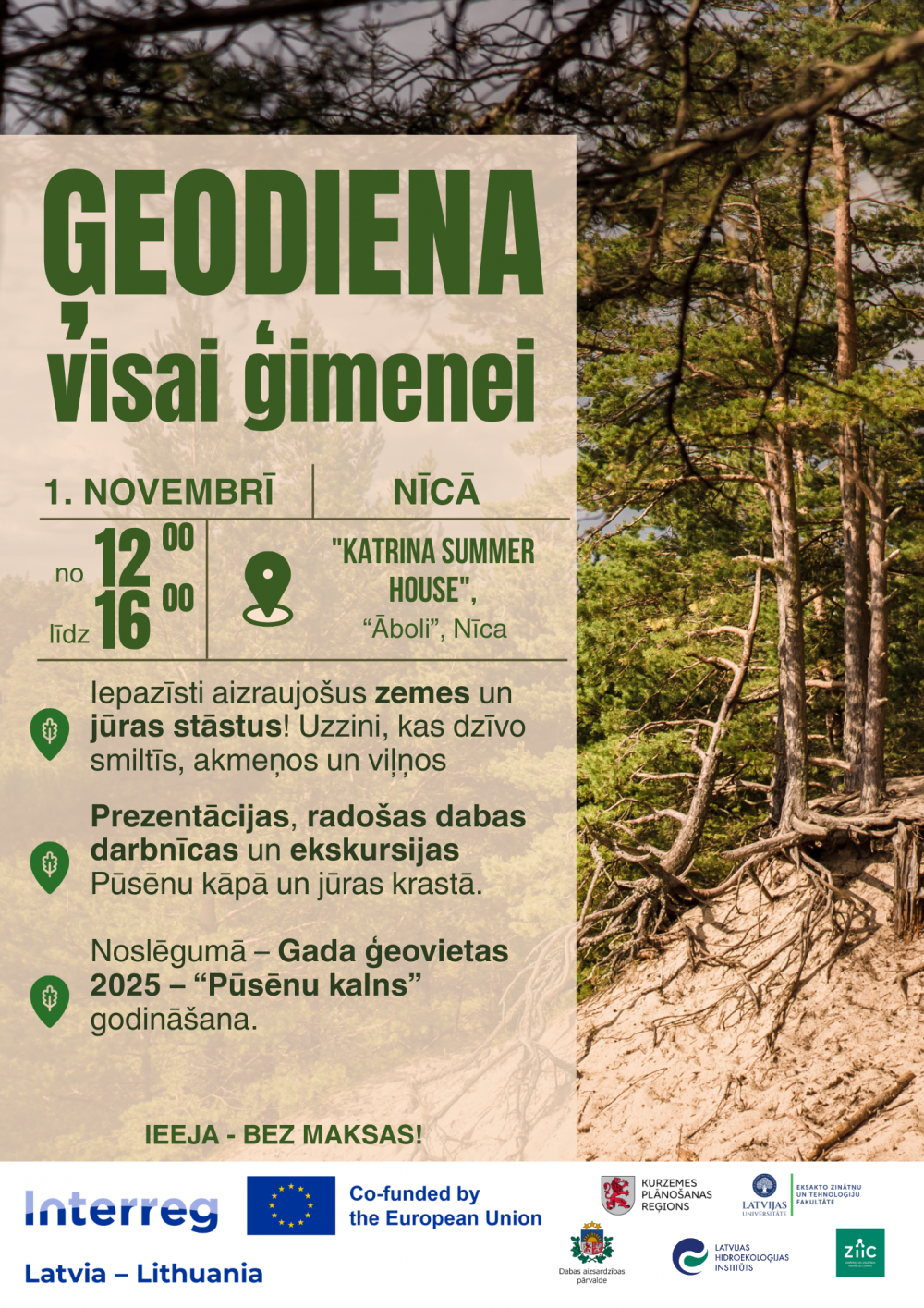 Pasākumu organizē Kurzemes plānošanas reģions sadarbībā ar Latvijas Universitāti, projekta “Geosites – Ģeoloģisko struktūru aizsardzības veicināšana Latvijā un Lietuvā” ietvaros, kas tiek īstenots Interreg Latvijas–Lietuvas pārrobežu sadarbības programmā 2021.–2027. gadam.