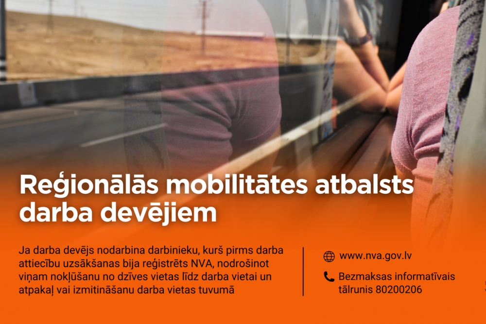 Detalizētāka informācija par reģionālās mobilitātes atbalsta pasākuma nosacījumiem un iesniedzamo dokumentu veidlapas pieejamas NVA tīmekļvietnes sadaļā “Darba devējiem”.