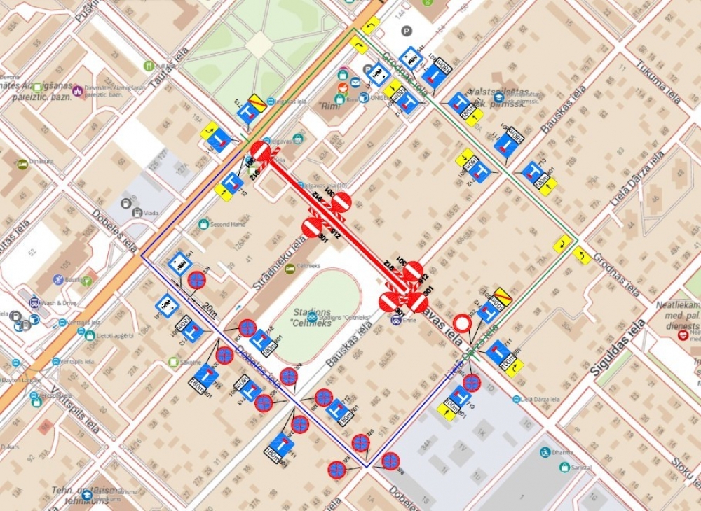 Minēto Jelgavas ielas posmu varēs apbraukt pa 18. novembra, Grodņas un Lielā dārza ielu. Šajā laika periodā noteikti mehānisko transportlīdzekļu apstāšanās un stāvēšanas ierobežojumi Dobeles ielas posmā no 18. novembra ielas līdz Lielā Dārza ielai un Lielā dārza ielas posmā no Dobeles ielas līdz Jelgavas ielai.