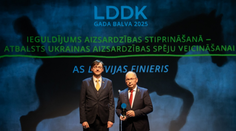 Tika godināti uzņēmumi, kuri ir snieguši ievērojamu ieguldījumu mūsu valsts prioritārajās jomās – aizsardzība, demogrāfija, izglītība. Kategorijā “Par uzņēmuma ieguldījumu aizsardzības stiprināšanā – par sniegto atbalstu Ukrainas aizsardzības spēju veicināšanai” balva pasniegta AS “Latvijas Finieris”.