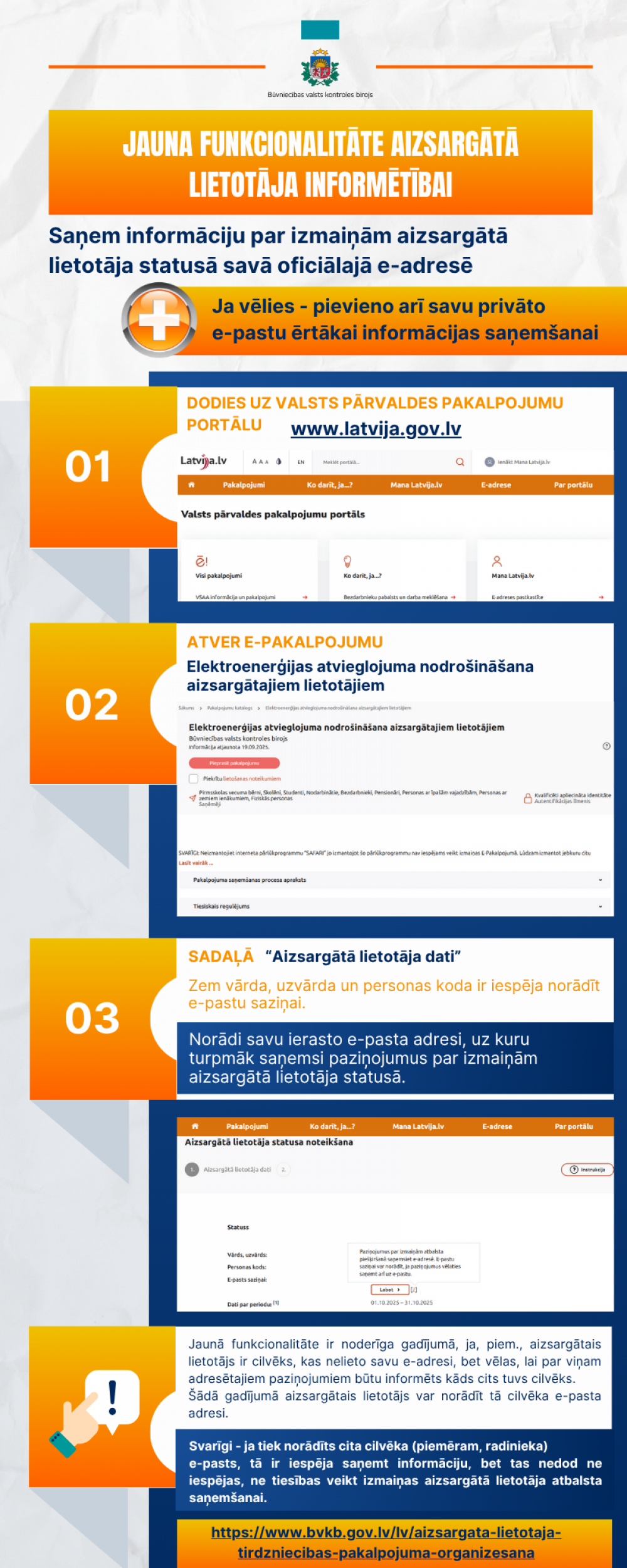 Lai aizsargātais lietotājs saņemtu informāciju tieši savā ērtajā e-pastā, jārīkojas šādi:
