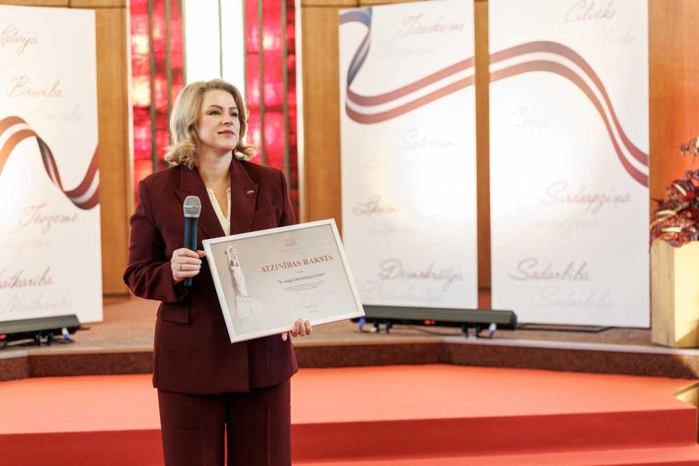 Ministru prezidente sacīja: "Novembris ir laiks, kad visā valstī atzīmējam daudzus patriotiskus notikumus un godinām mūsu cilvēkus, kas devušu lielu ieguldījumu Latvijas attīstībā. Tieši šie cilvēki mums visvairāk pastāsta par Latviju un latviešiem."
