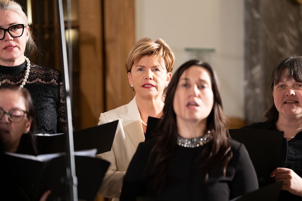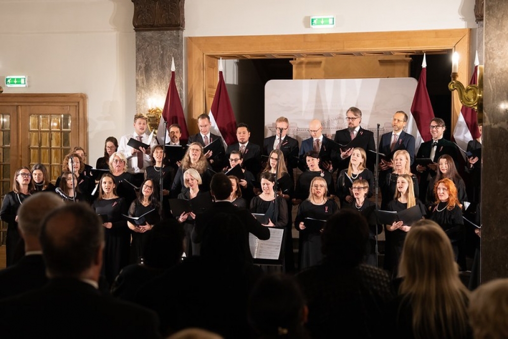 Svinīgo pieņemšanu ar muzikālu priekšnesumu bagātināja Latvijas Diplomātiskais koris. Pasākumā izskanēja Jurjānu Andreja dziesma “Nevis slinkojot un pūstot” ar Jura Alunāna latvisko atdzejojumu, Raimonda Paula un dzejnieka Ojāra Vācieša dziesma “Tu esi”, kā arī “Raxtu Raxti”/Latviešu tautas dziesma “Parādies(i) tu, saulīte”. Kora mākslinieciskais vadītājs ir Rūdolfs Bērtiņš, diriģents – Didzis Soste.