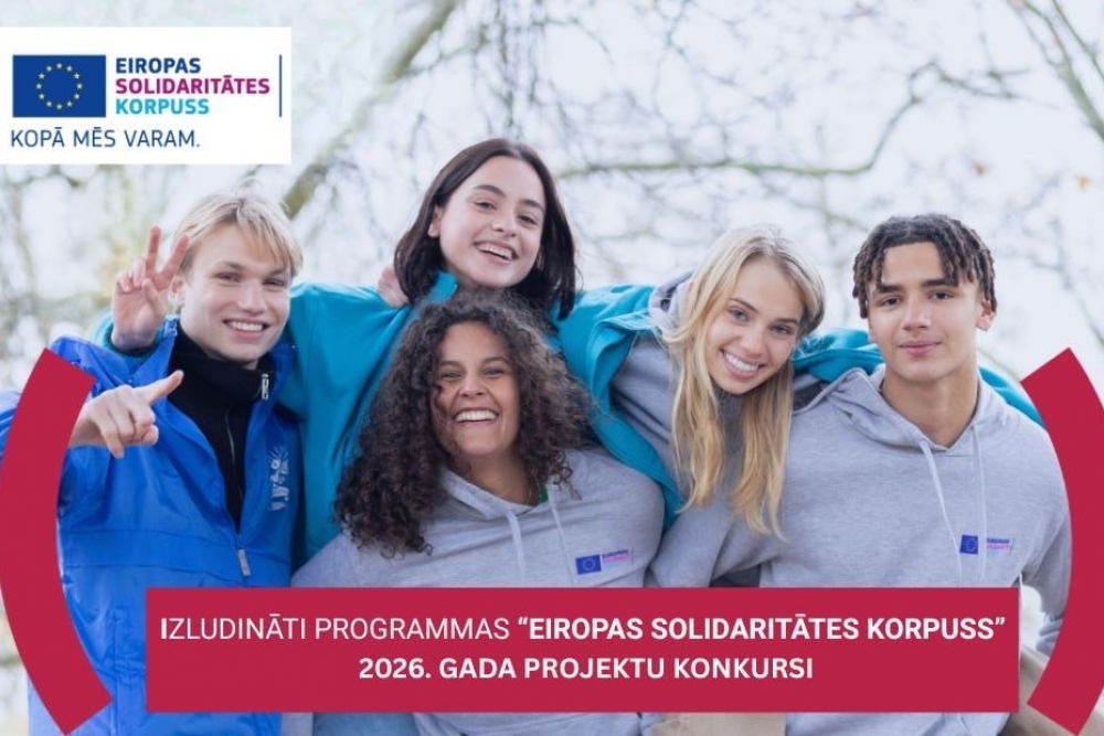 Programmas “Eiropas Solidaritātes korpuss” ietvaros 2026. gadā organizācijas un jaunieši varēs īstenot brīvprātīgā darba un solidaritātes projektu aktivitātes. Programmā “Eiropas Solidaritātes korpuss” projektus varēs iesniegt divas reizes gadā: