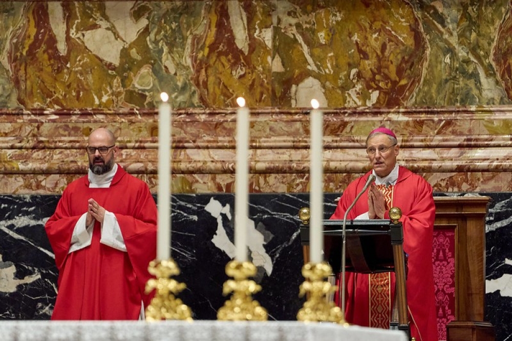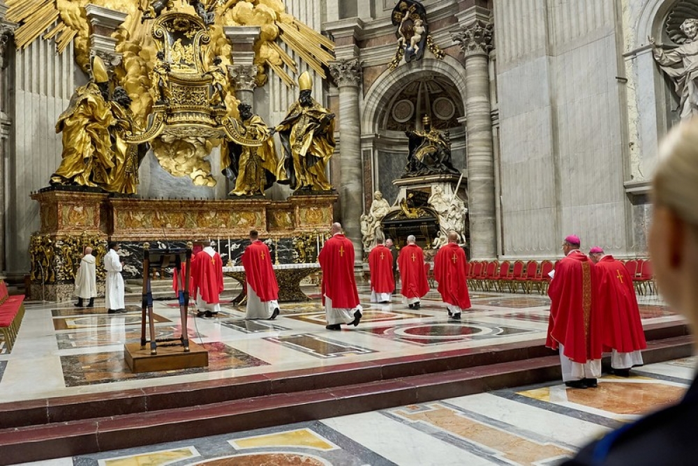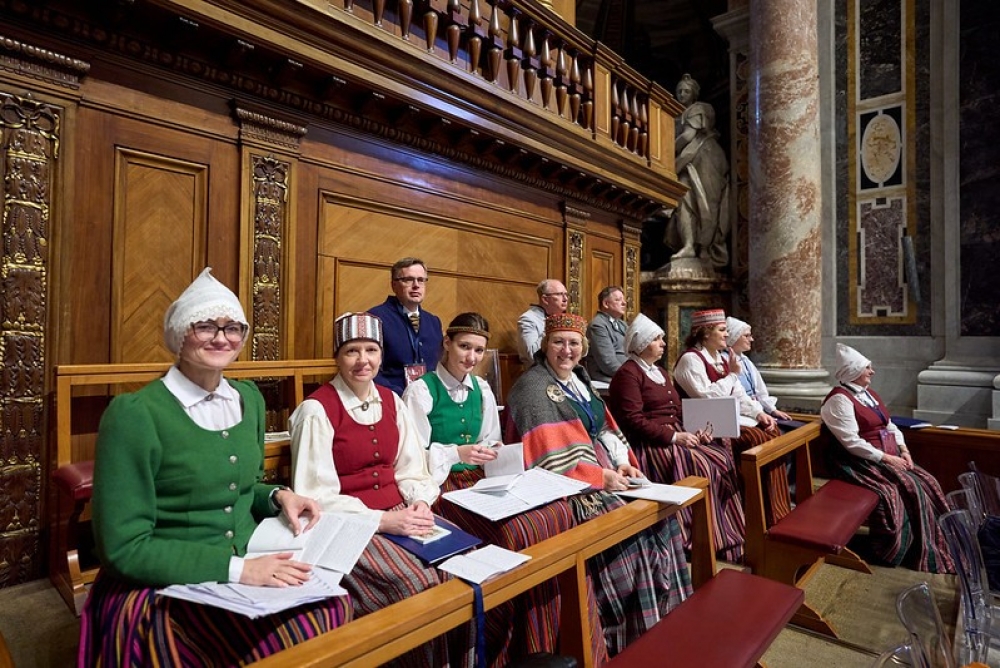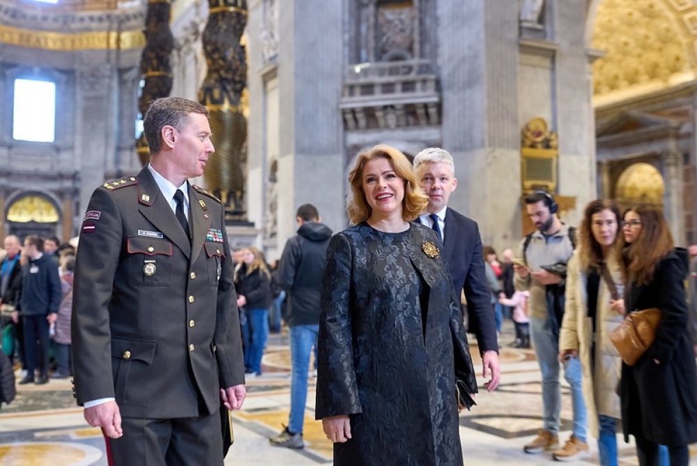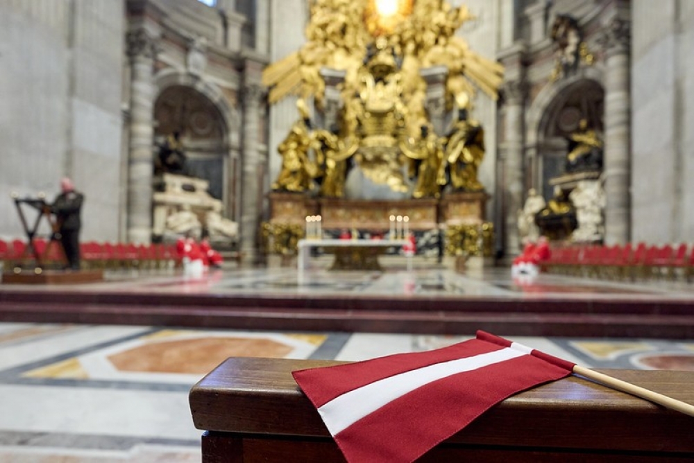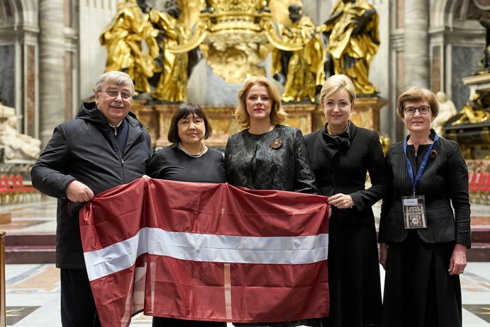 Pirmdiena sākās ar Ministru prezidentes dalību dievkalpojumā latviešu valodā kopā ar 200 latviešu svētceļniekiem Sv. Pētera bazilikā pie Pētera katedras altāra.