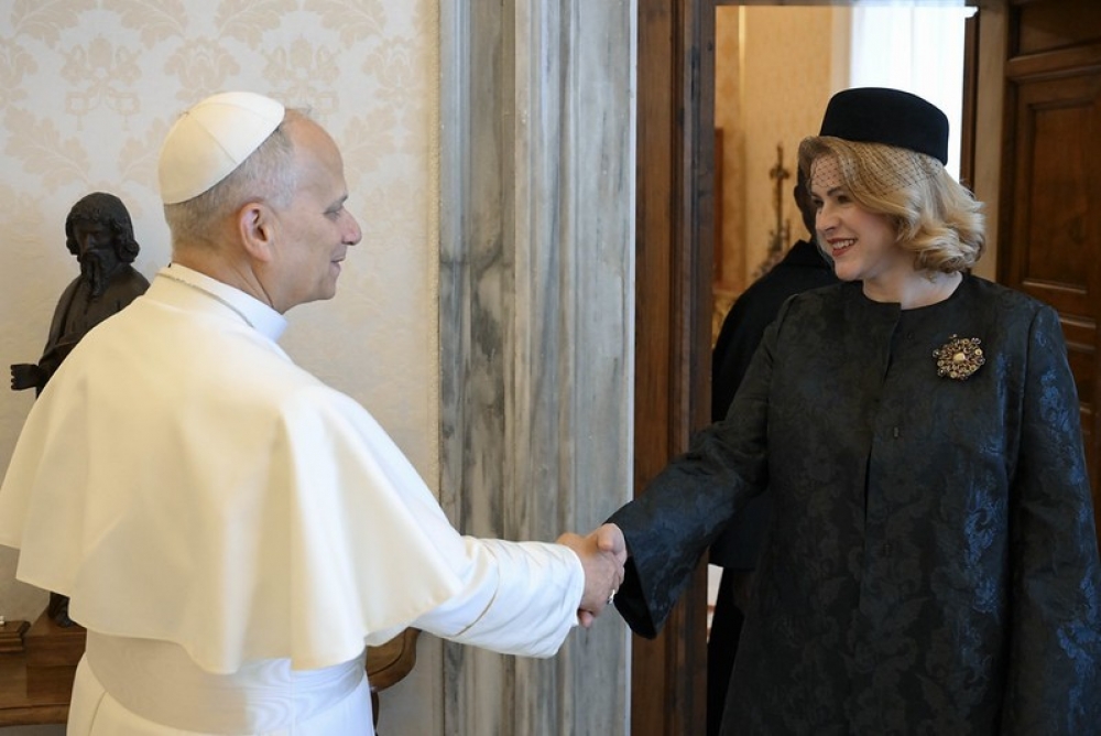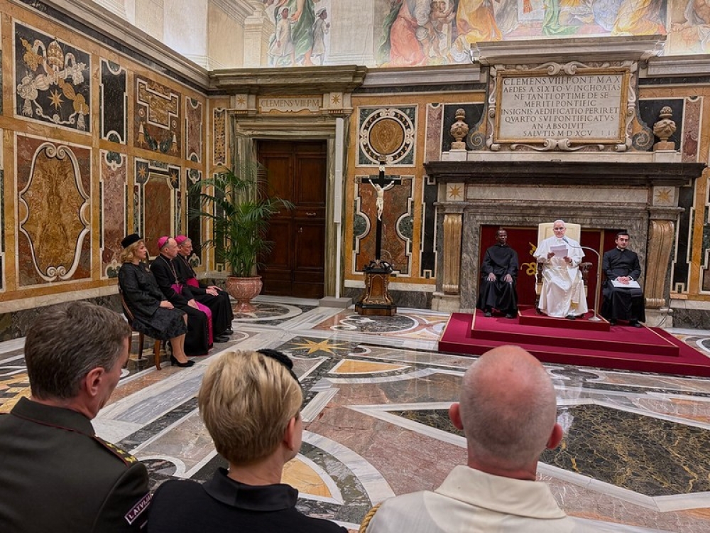 “Latvija vēsturiski ir cieši saistīta ar kristietību. Jau izsenis mūsu zemi dēvēja par Terra Mariana jeb Marijas zemi, kas simbolizēja mūsu piederību kristīgajai Eiropai un ticību kā garīgu balstu dažādos laikos. Arī šodien mūs vieno ticība, cerība un miera centieni. Latvijai ir sarežģīti kaimiņi, un vēsture mūs bieži ir nostādījusi karu un pārmaiņu krustcelēs. Tāpēc mums vienmēr ir bijis jāaizsargā gan sava valsts, gan savu cilvēku drošība. Mūsu dialogs ar Svēto Krēslu ir īpaši nozīmīgs. Esam vienoti taisnīga miera centienos, atbalstot Ukrainu un vienlaikus stiprinot arī savas valsts drošību,” pēc tikšanās uzsvēra E. Siliņa.