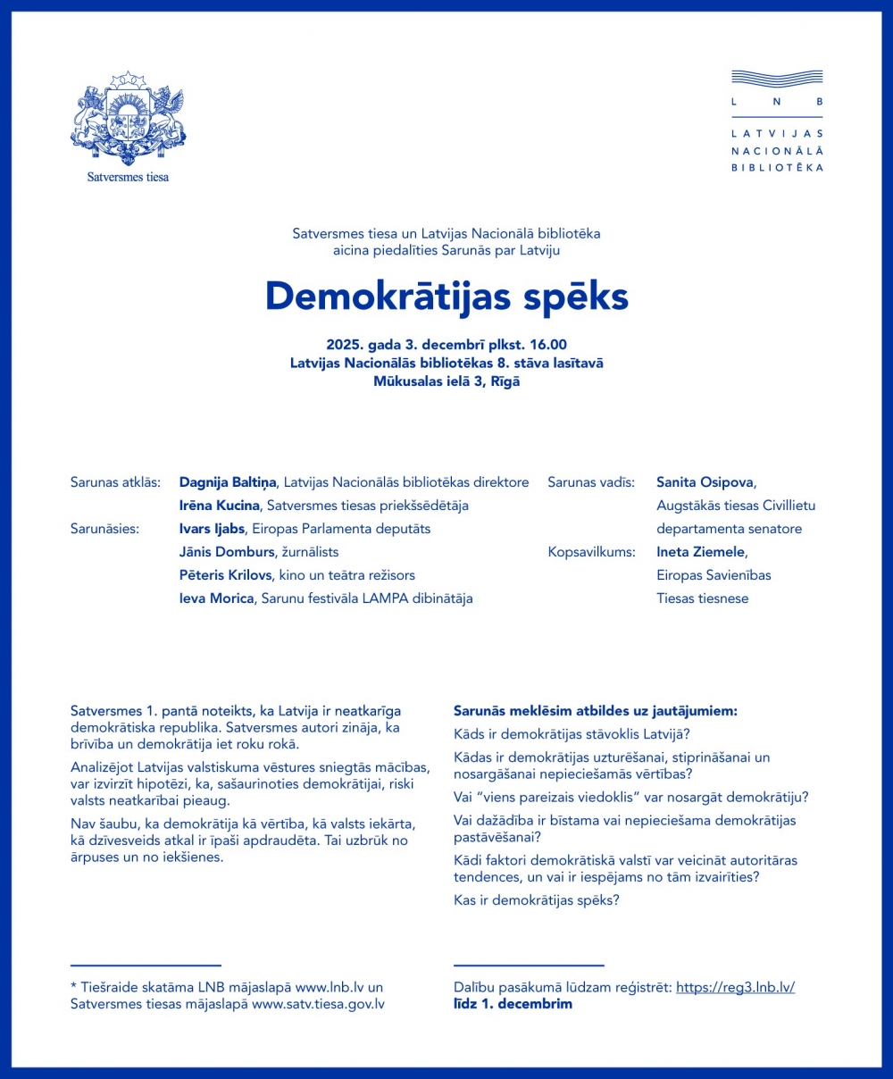 Dalību pasākumā aicinām pieteikt, reģistrējoties https://reg3.lnb.lv/ līdz 1. decembrim.