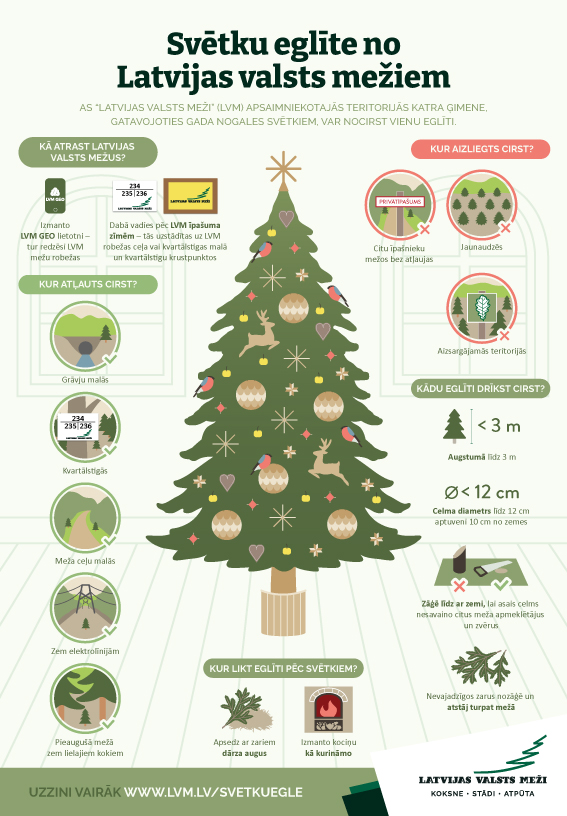 Eglīti svētkiem var doties meklēt tikai LVM apsaimniekotajos mežos Latvijas teritorijā, kas dabā apzīmēti ar LVM īpašuma zīmēm – uz dzeltena fona attēlots LVM logotips. Uz LVM robežas ceļa vai kvartālstigas malā un kvartālstigu krustpunktos izvietotās zīmes vēsta, ka tā ir valsts mežu teritorija. LVM apsaimniekoto mežu izvietojumu precīzi var aplūkot arī mobilajā lietotnē LVM GEO.