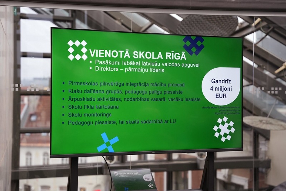 Nolūkā sekmēt latviešu valodas apguvi un izmantošanu ikdienā, Rīgas vicemēra plānā ir vairāki konkrēti rīcības virzieni: pilnvērtīga pirmsskolas integrācija mācību procesā, klašu dalīšana grupās, piesaistot pedagogu palīgus, ārpusklašu aktivitātes un nodarbības vasarā, iesaistot arī bērnu vecākus. Tāpat ir plānots turpināt kārtot Rīgas skolu tīklu, par nozīmīgu kritēriju skolas darbības novērtēšanā nosakot Vienotās skolas ieviešanas kvalitāti. Turpināsies izglītības procesa monitorings Rīgas skolās, iecerēts arī intensīvāk strādāt pie pedagogu piesaistes, kur Rīgas dome aktīvāk sadarbosies ar Latvijas Universitāti.