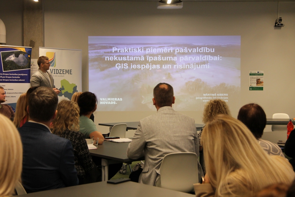 Valmieras novada pašvaldības speciālista Mārtiņa Ķibera demonstrētie ģeogrāfiskās informācijas sistēmas (ĢIS) risinājumi parādīja, kā telpiskie dati var būtiski atvieglot gan ikdienas darbu, gan stratēģisku lēmumu pieņemšanu. Semināra dalībnieki redzēja piemērus, kā vizuāli uzskatāmi kartēs iespējams attēlot ēku tehnisko stāvokli, zemes vienību izmantošanu, ēku ekspluatācijas gadus, līgumu termiņus, neizmantotās teritorijas un uzturēšanas darbu plānošanu. Telpiskā pieeja ļauj pāriet no tabulām uz kartēm un ātri identificēt teritorijas ar noteiktiem kritērijiem, kas līdz šim bieži tika meklētas manuāli.
