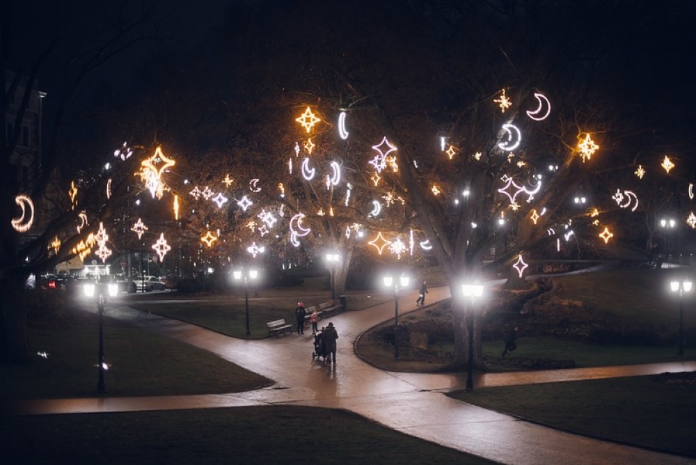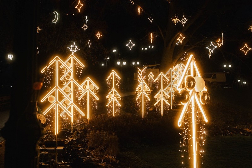 Pilsētas koku zaros kopumā izvietoti 55 kilometri lampiņu virteņu un 5688 gaismas dekori.