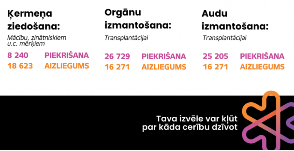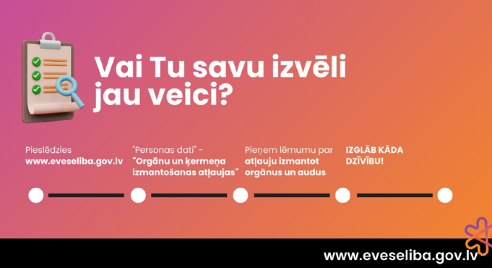 E-veselības portālā (www.eveseliba.gov.lv) ātri un ērti ir iespējams veikt izvēli par orgānu vai audu izmantošanu transplantācijai pēc nāves. Pašlaik šo iespēju ir izmantojuši tikai 2,5% Latvijas iedzīvotāju.