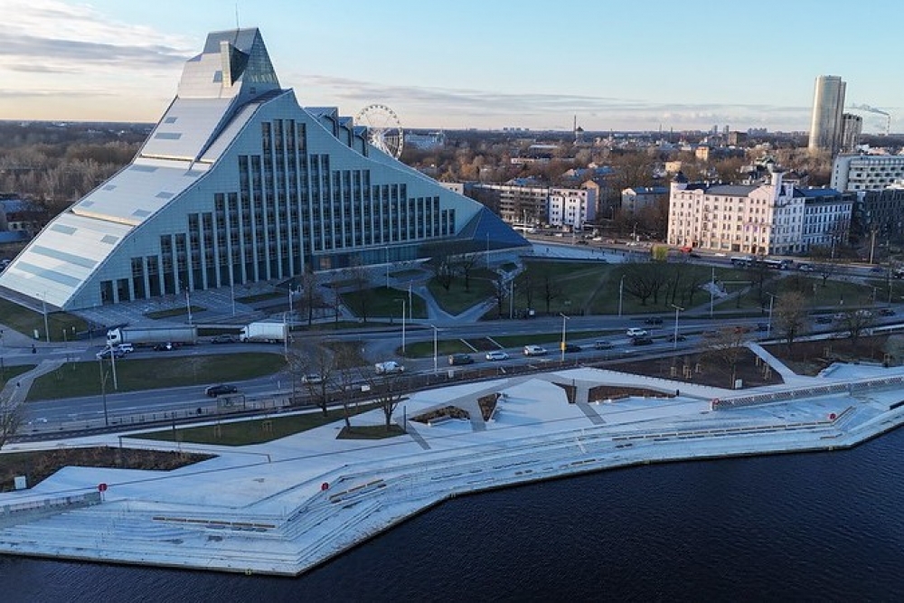 Jaunā centrālā promenādes vieta – skatu laukums Daugavā, kas simbolizē Gaismas pils atspulgu ūdenī