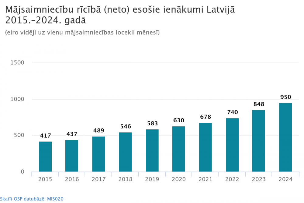 2024. gadā vistrūcīgākajās mājsaimniecībās (pirmajā kvintiļu grupā2) ienākumi uz vienu mājsaimniecības locekli bija 317 eiro mēnesī, turpretim visturīgākajās mājsaimniecībās (piektajā kvintiļu grupā) – 2 084 eiro mēnesī jeb 6,7 reizes vairāk (2023. gadā – 6,3 reizes). Mājsaimniecībās ar vidējiem ienākumiem tie svārstījās no 569 eiro mēnesī (otrajā kvintiļu grupā) līdz 1 094 eiro mēnesī (ceturtajā kvintiļu grupā).