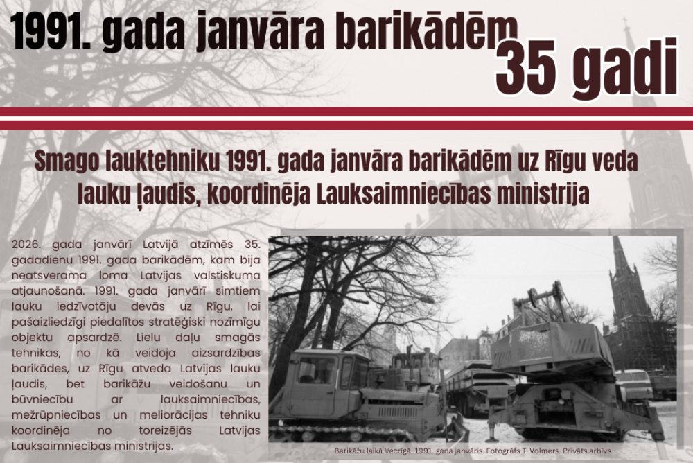 Lai atcerētos 1991. gada janvāra barikāžu laikus, Zemkopības ministrija Latvijas sabiedrībai no 12. līdz 22. janvārim organizēs vairākus izglītojošus atceres pasākumus, par ko plašāka informācija tiks sniegta tuvākajā laikā Zemkopības ministrijas tīmekļvietnē, sociālajos medijos u. c.