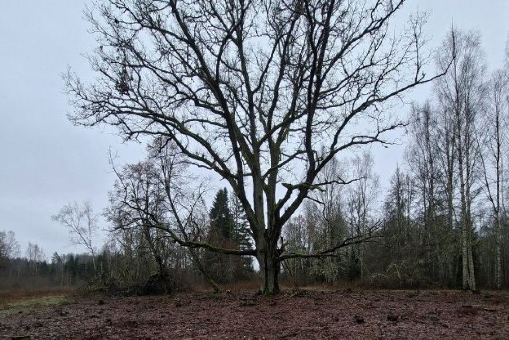 Mežizstrādes darbi noritēja veiksmīgi, atsedzot vecā dižkoka varenumu, kas tagad labi redzams no LVM Ķauķīšu meža autoceļa.