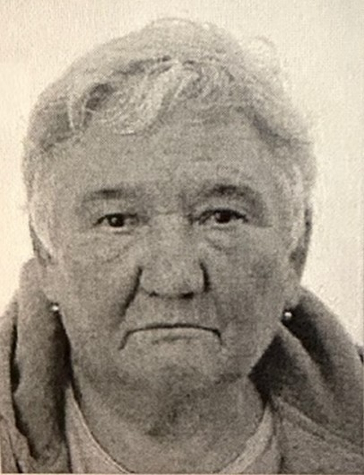 Pazīmes: augums aptuveni 160 cm, vidējas miesas būves, kalsnu seju, īsiem sirmiem matiem. Varētu būt ģērbusies biksēs un pusgarā jakā.