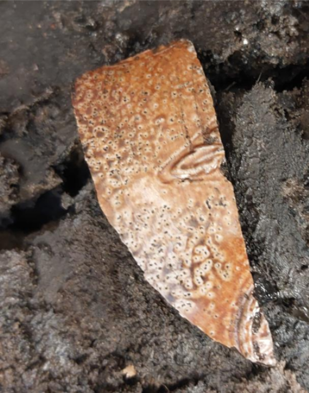 Attēlā: Ķelnes akmensmasas krūkas fragments (16.–17. gs.).