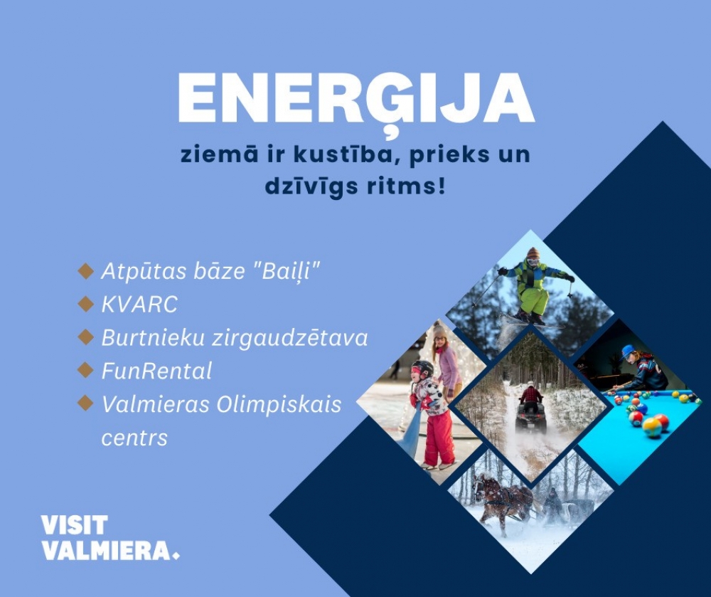 Valmieras novada Tūrisma pārvalde apkopojusi ieteikumus trīs atšķirīgiem ziemas baudīšanas veidiem, ļaujot ikvienam atrast sev piemērotāko noskaņu – iedvesmas pilnu, mierīgu vai enerģisku. Šie ieteikumi atklāj Valmieras novada daudzveidīgās iespējas ziemas piedzīvojumiem, aicinot ziemu piedzīvot ne tikai kā gadalaiku, bet arī kā personisku sajūtu!