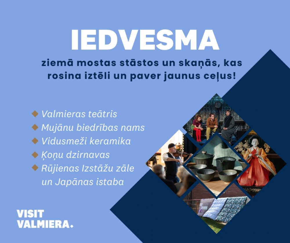 Valmieras teātrī iedvesma dzimst dramaturģiskos stāstos, kas uzrunā un paliek atmiņā arī pēc izrādes beigām. Daudzveidīgais un laikmetīgais repertuārs piedāvā iespēju ieraudzīt ikdienu citā gaismā un ļauj domām iegūt jaunu virzienu. Savukārt teātra ekskursijās iespējams ieskatīties aizkulisēs, smelties iedvesmu radošajā procesā un atklāt stāstus, kas parasti paliek skatītājiem neredzami.