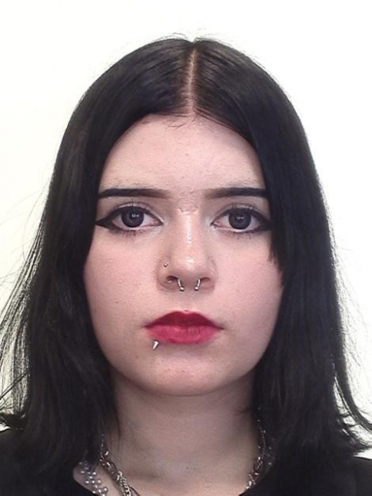 Meitenes pazīmes: augums 157 cm, smalkas miesas būves, īsi, melni mati. Bija ģērbusies melnā virsjakā, melnās sporta biksēs, kājās melni šņorējamie, garie zābaki.